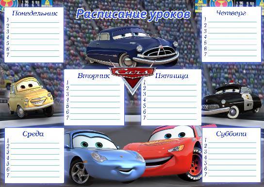 Расписание уроков для мальчиков - Тачки