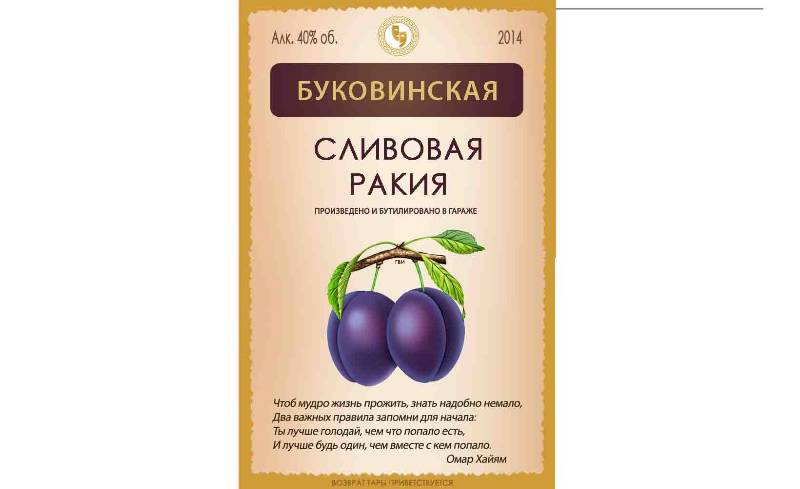 Этикетка на сливовую ракию