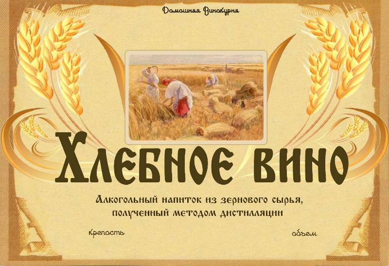 Этикетка на хлебное вино