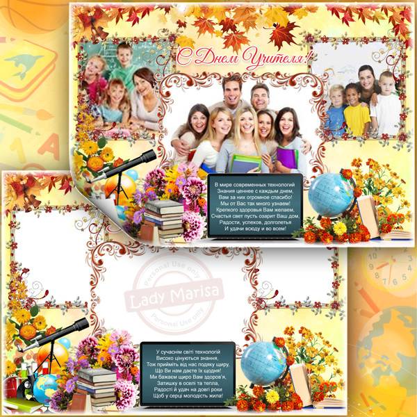 Поздравительный школьный плакат-фоторамка - С Днем Учителя