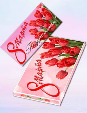 Набор из конверта для денег и обертки на шоколад - С 8 марта