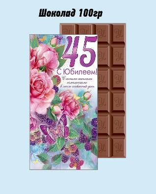 Обложка на шоколад 100гр - 45 лет, С Юбилеем!