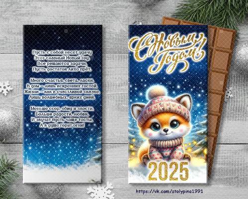 Коробочка для шоколада 90-100 гр Новогодняя с Лисенком