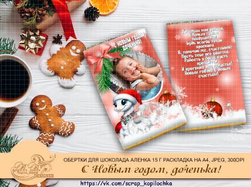 Обертка для шоколада Аленка 15 г С Новым годом, доченька