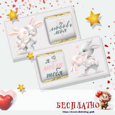 Бесплатные шаблоны "птичек" на одну конфетку на 14 февраля