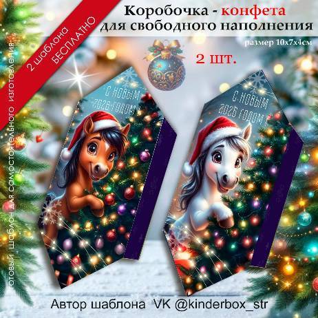 Шаблон - КОРОБОЧКА - "КОНФЕТА" "С Новым 2026 годом!", 2шт.