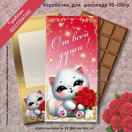 Шаблон - "ОТ ВСЕЙ ДУШИ" коробочка для шоколада 90-100гр.