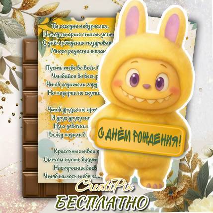 Шаблон на шоколад с Лабубу - "С днем рождения"