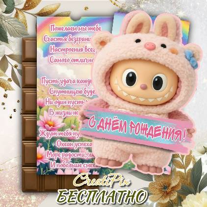 Шаблон на шоколад с Лабубу - "С днем рождения"