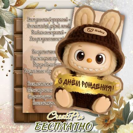 Шаблон на шоколад с Лабубу - "С днем рождения"