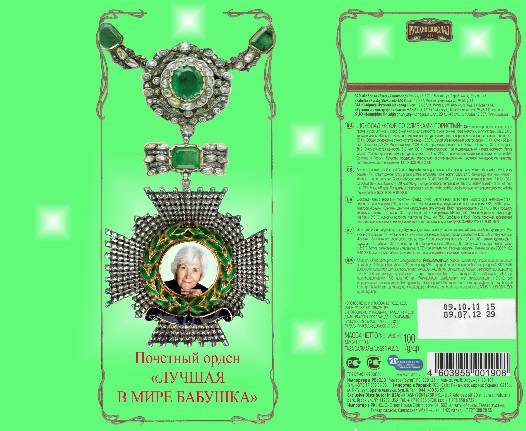 Обертка на шоколад "Почетный орден Лучшая в Мире Бабушка"