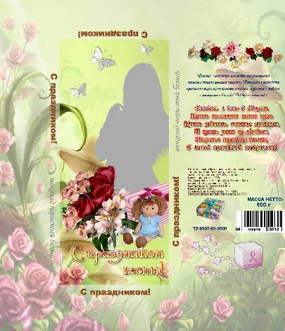Обертка на шоколад "С прадником Весны"