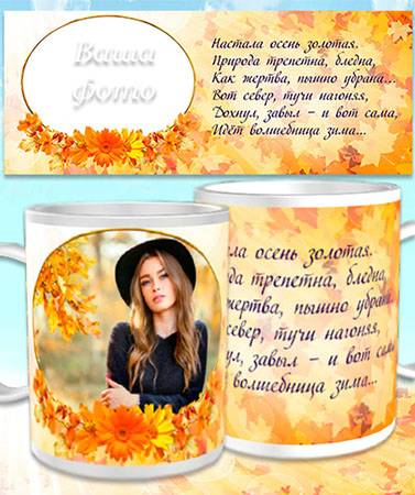 Шаблон для кружки с осенним дизайном и рамкой под фото - Настала осень золотая