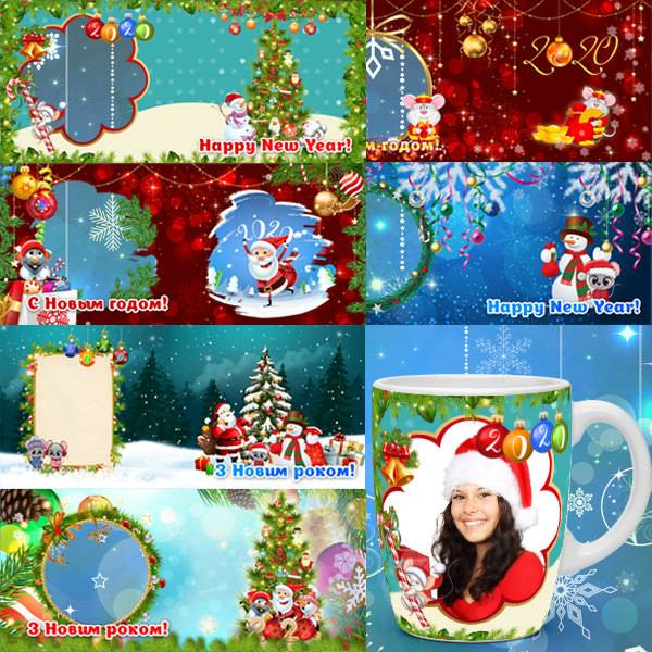 Новогодние шаблоны для кружки - Наступает Мышкин год, счастье пусть он принесет!