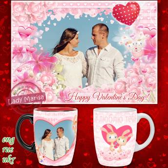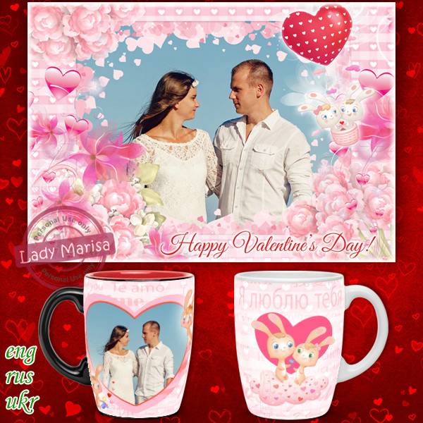 Романтическая открытка-фоторамка и шаблон для кружки - Зайка моя