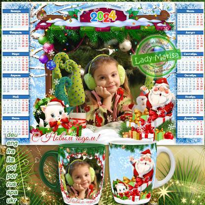 Календарь-фоторамка на 2024 год и шаблон для кружки - Новогодняя сказка