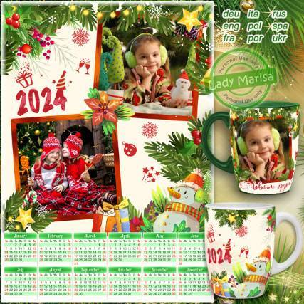 Календарь-фоторамка на 2024 год и шаблон для кружки - Дайте нам скорее краски, нарисуем Новый год!