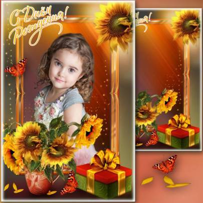 Праздничная рамка для оформления фото - Солнечный букет на День Рождения