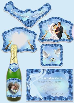 Этикетка на шампанское и сертификат для конкурсов - Свадебное шампанское