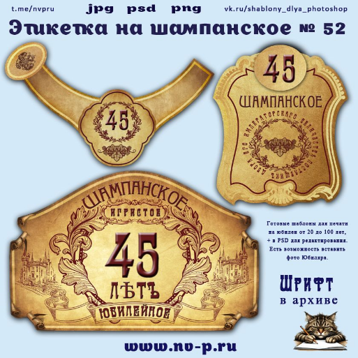 Этикетка на шампанское к юбилею по годам Юбиляра + вариант с фото